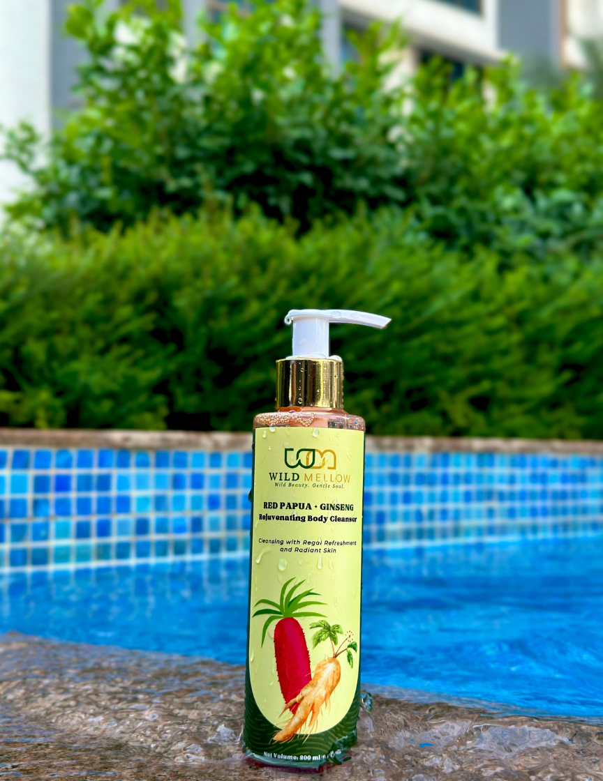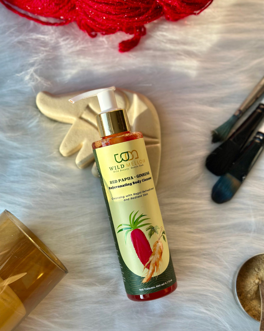 Start with the Red Papua + Ginseng Body Cleanser. It gently removes dirt and sweat while keeping your skin soft, clean, and calm.
