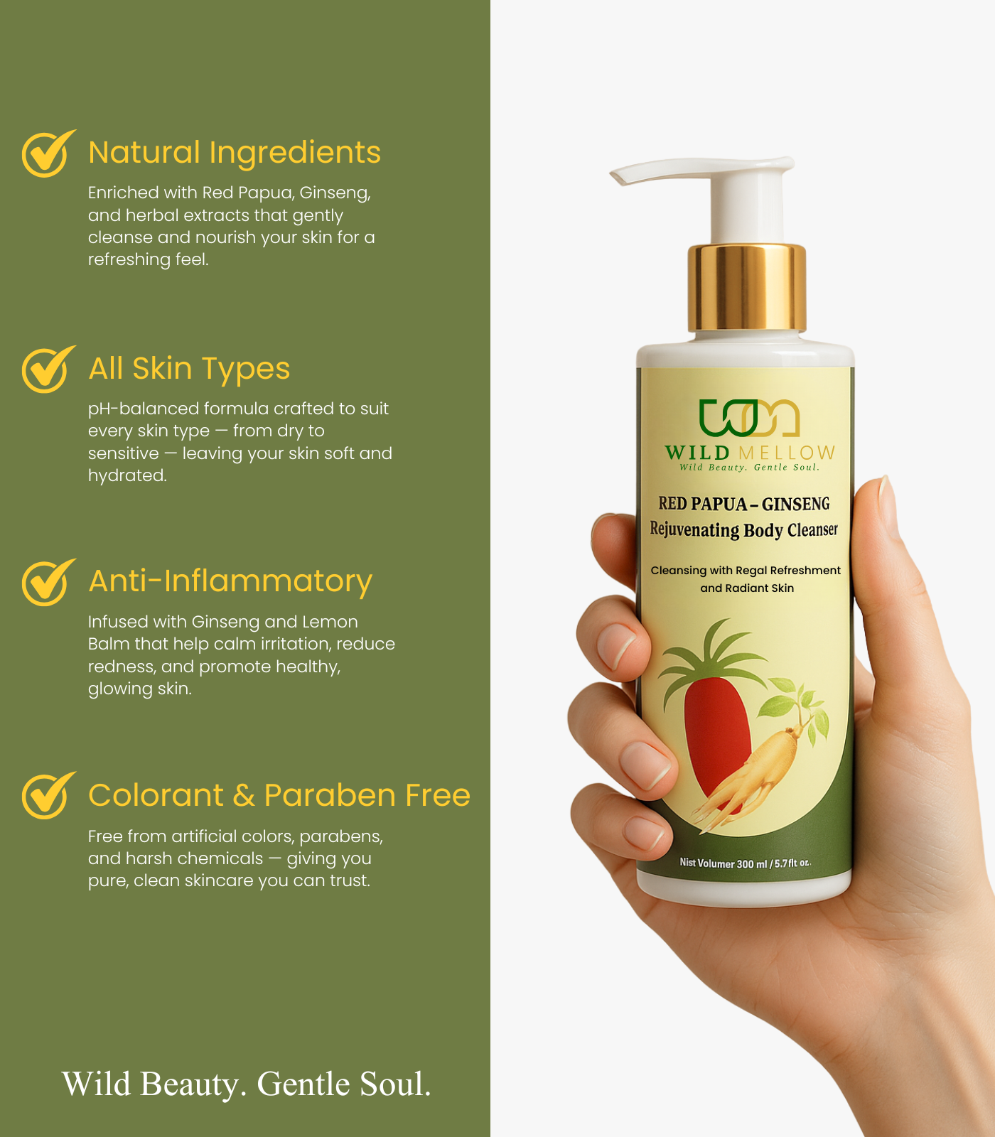 A luxurious body cleanser enriched with the goodness of Red Papua extract and Ginseng root, designed to deeply cleanse, refresh, and rejuvenate your skin. This premium formula removes impurities while maintaining your skin’s natural moisture balance, leaving it soft, radiant, and revitalized after every wash.
